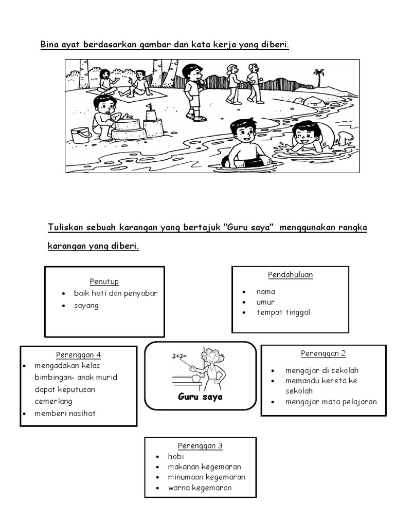 Contoh Ayat Perkataan pemandu. Pak Abu memotong rumput Cikgu Nasir mengajar Matematik. Kit Soon memasukkan gambar ke dalam album.